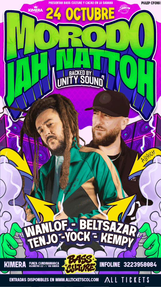 Morodo & Jah Nattoh – Funza Date: 24 octubre, 2025 Time:20:00 Venue: Kimera (Funza - Colombia) Compra tu Boleto